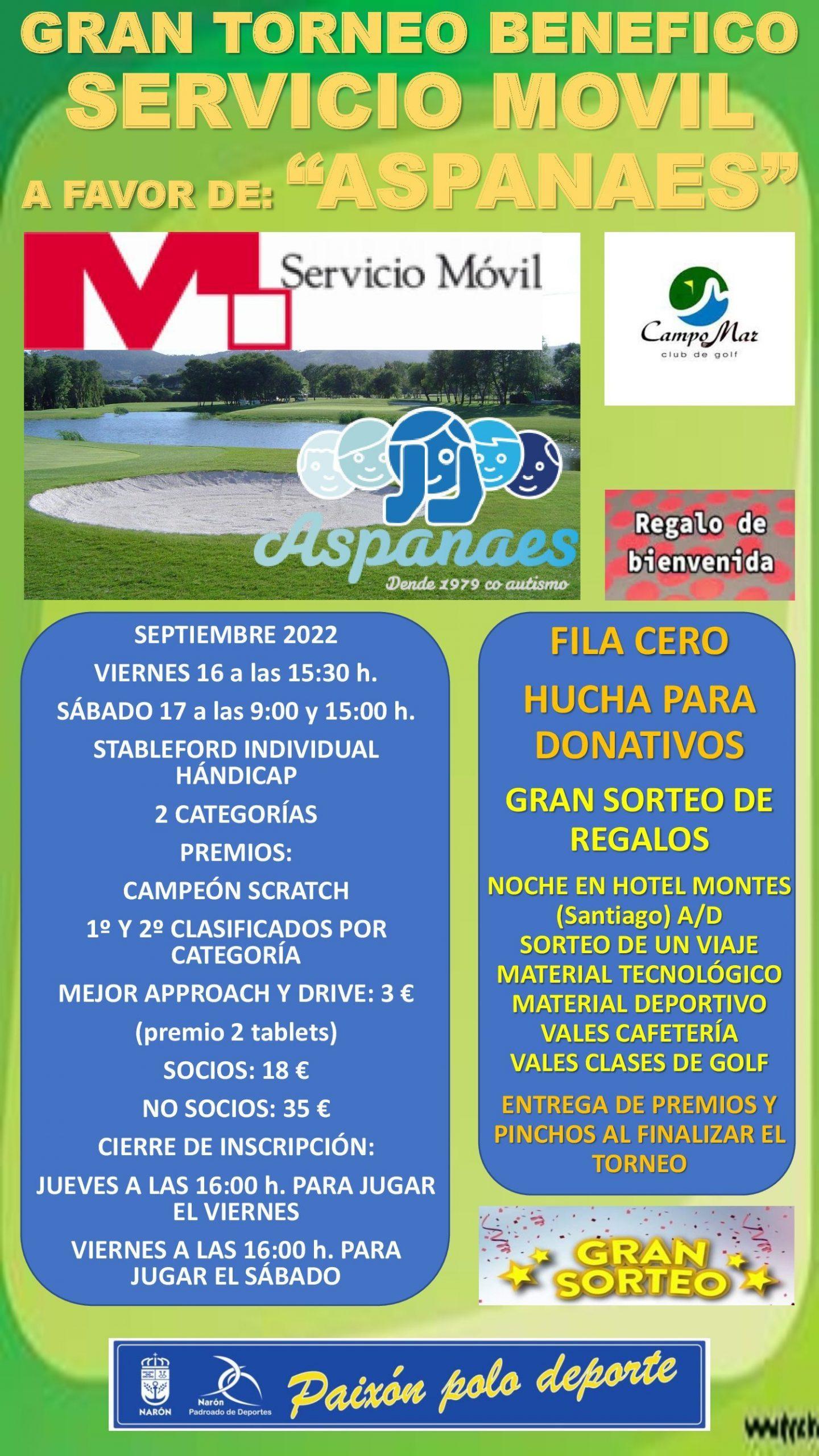 TORNEO BENEFICO SERVICIO MOVIL – ASPANAES Torneos SEPTIEMBRE 2022 VIERNES 16 a las 15:30 h. SÁBADO 17 a las 9:00 y 15:00 h. (más…)