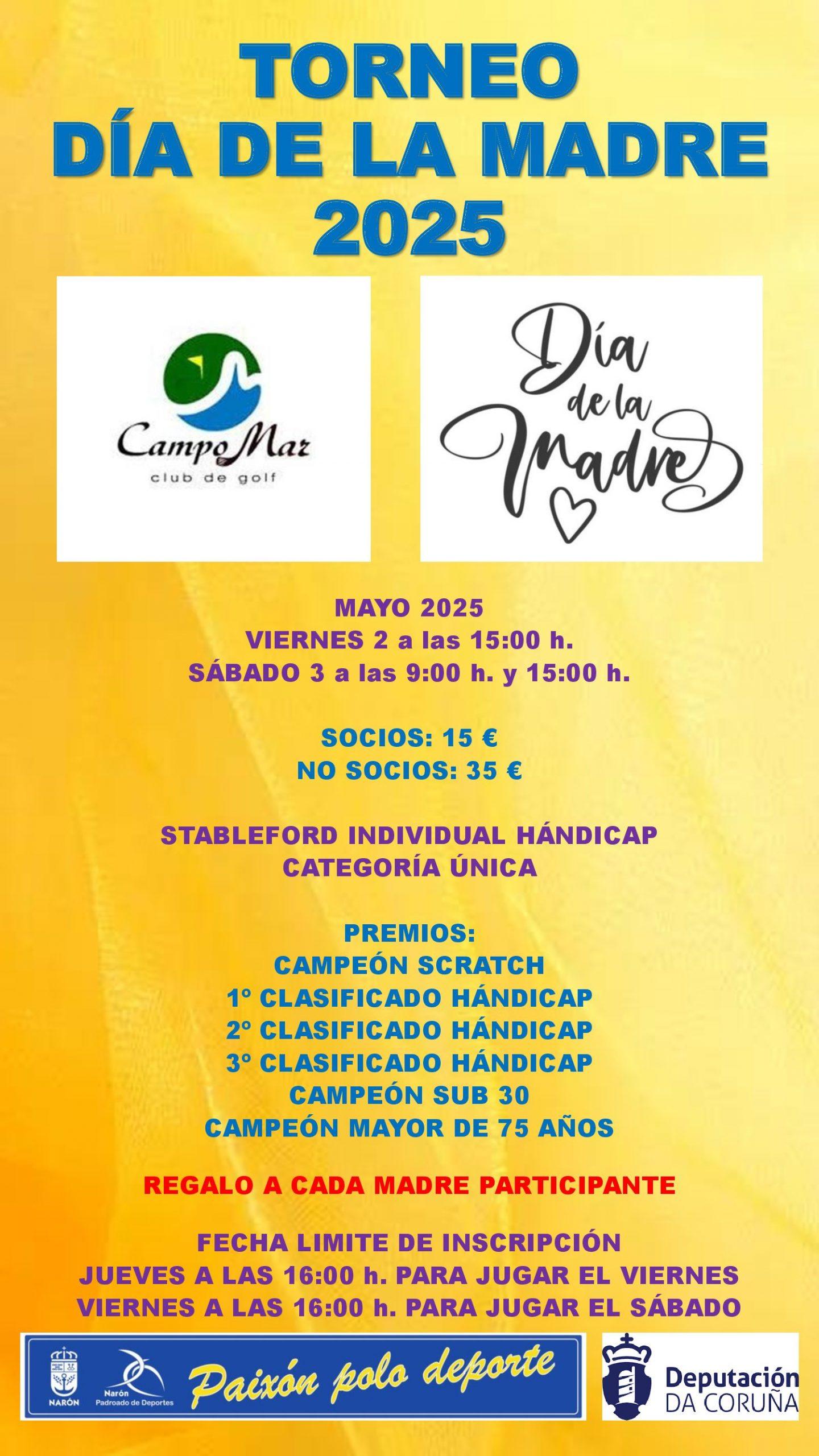 TORNEO DIA DE LA MADRE 2025 Torneos MAYO 2025 VIERNES 2 a las 15:00 h. SÁBADO 3 a las 9:00 y 15:00 h. (más…)
